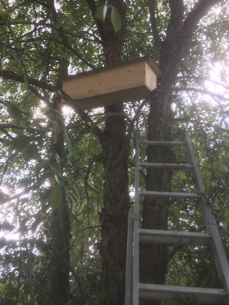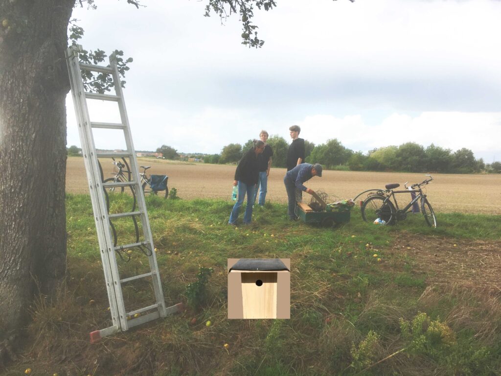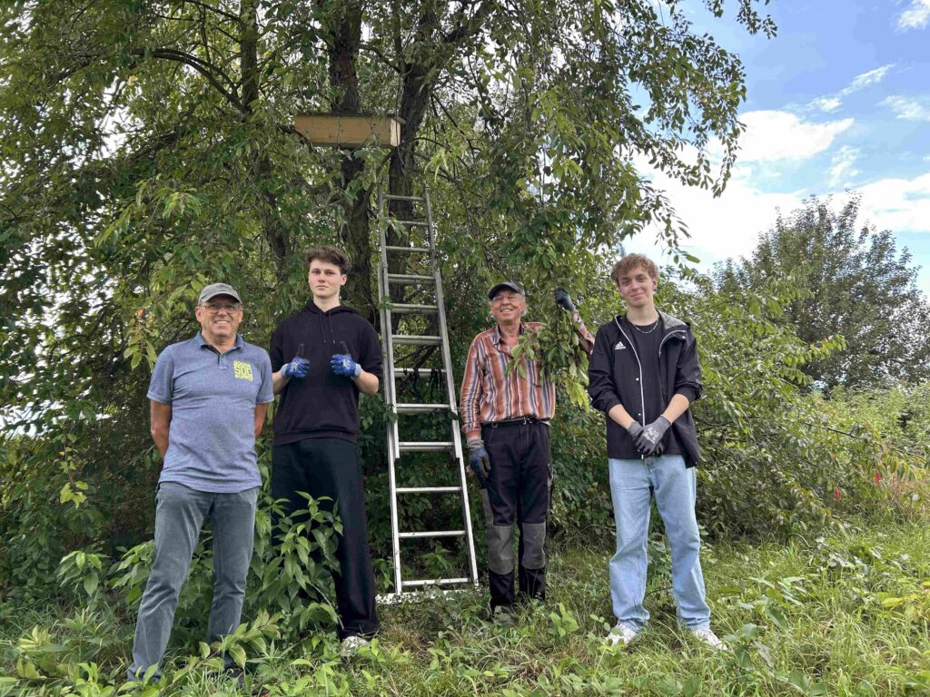 Am 05.09.2025 hat der NABU Hambrücken wieder zusammen mit der Erdgas Südwest GmbH eine Aktion durchgeführt, bei welcher weitere Steinkauz-Nistkästen auf der Gemarkung Hambrücken angebracht wurden. Es wurden zwei verschiedene Typen von Nistkästen aufgehängt, eine senkrechte Ausführung und eine waagerechte Ausführung mit Marderschutz. Das Gebiet auf Gemarkung Hambrücken, in welchem wir diese aufgehängt haben, ist wegen seines Strukturreichtums sehr gut als Steinkauz-Habitat geeignet. Dankenswerterweise hat die Firma Erdgas Südwest GmbH uns schon etliche Nistkästen gespendet, die wir in der Vergangenheit und jetzt wieder aufhängen konnten. Auch die Erstellung unsere mobile Auswilderungsvoliere, mit der wir in diesem Jahr auch wieder junge Steinkäuze aus der Zucht der „IG Steinkauz Mittlerer Oberrhein“ auswildern, wurde von der Erdgas Südwest GmbH finanziell unterstützt.